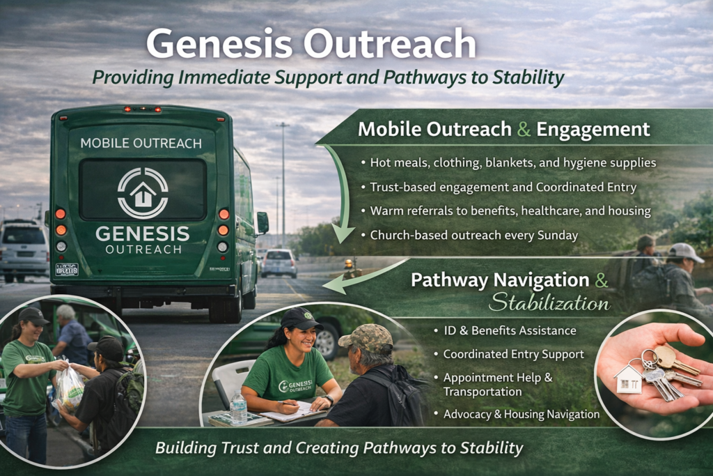 For those who feel lost, GENESIS walks beside them. We don’t just give things — we offer guidance, clarity, and connection. Our team helps people find safe shelter, meet basic needs, and access training and services that build real skills. With every next step toward stability, learning, and work, GENESIS protects dignity and opens pathways to lasting hope.